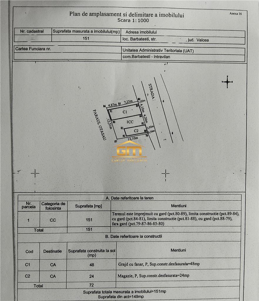 Agenția imobiliară Grup Median vă propune spre vânzare o proprietate deosebită, situată în comuna Bărbătești, într-o zonă pitorească de deal, cu aer curat și liniște deplină – locul ideal pentru refugiu, casă de vacanță sau proiect turistic.